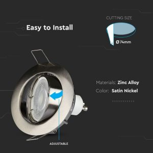 SKU 3588 VT-779-SN-RD V-TAC Portafaretto LED da Incasso Rotondo GU10 e GU5.3 (MR16) Colore Nichel Satinato Orientabile