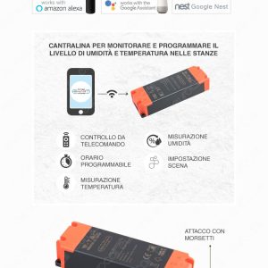 65 €0 out of 5Controller dimmer Wi-Fi per strisce LED con regolazione delle impostazioni e dei giochi di luce tramite App. Input: DC 12V-24V. Output: 12V 120W; 24V 240W; max 4A x 5 canali. Dimensioni:80x15x60mm.