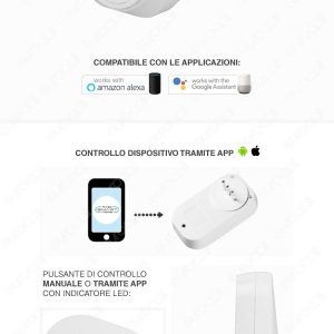 32,46 €0 out of 5Presa 10A+Schuko e USB Wi-Fi con spina Schuko controllabile tramite App. Compatibile con Amazon Alexa e Google Home. Carico massimo: 2200W. Dimensioni: 45x62x50mm.