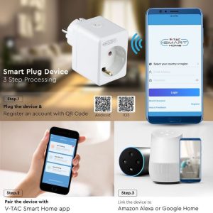 SKU 8415 VT-5001 V-TAC Presa Schuko WiFi con Interruttore Compatibile con Google Home e Amazon Alexa Tramite App V-Tac Smart