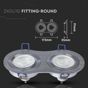Supporto Porta faretti da incasso in alluminio colore nichel satinato effetto spazzolato. Anelli orientabili di 15°. Senza anello di bloccaggio. Dimensioni: 173×91 mm.