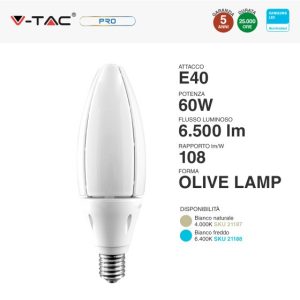 60W luce 4000k naturale V-TAC PRO Lampadina LED Chip Samsung E40 Oliva