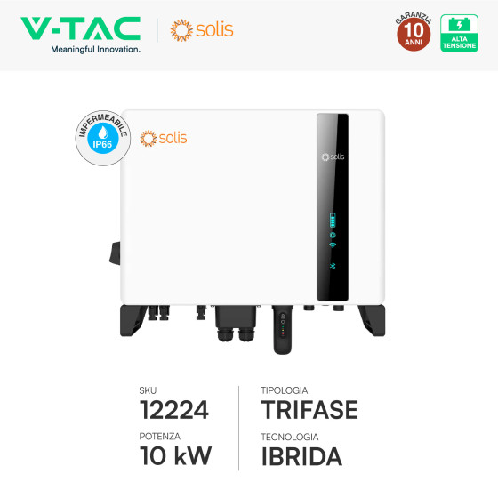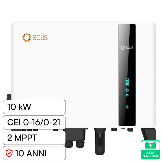 10KW Inverter Fotovoltaico Alta Tensione Solis Trifase Ibrido On-Grid/Off-Grid 10kW, Doppio MPPT, CEI 0-21, Schermo LCD, WiFi Meter e TA Inclusi,