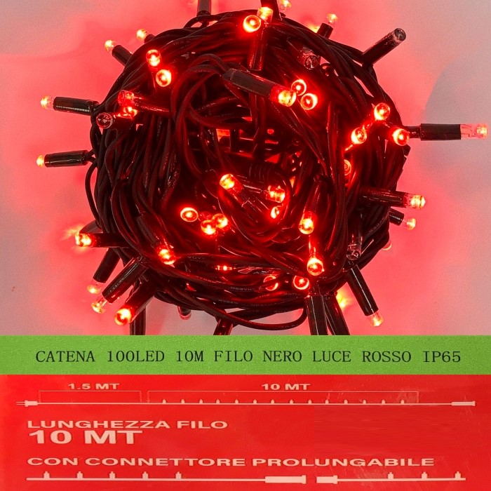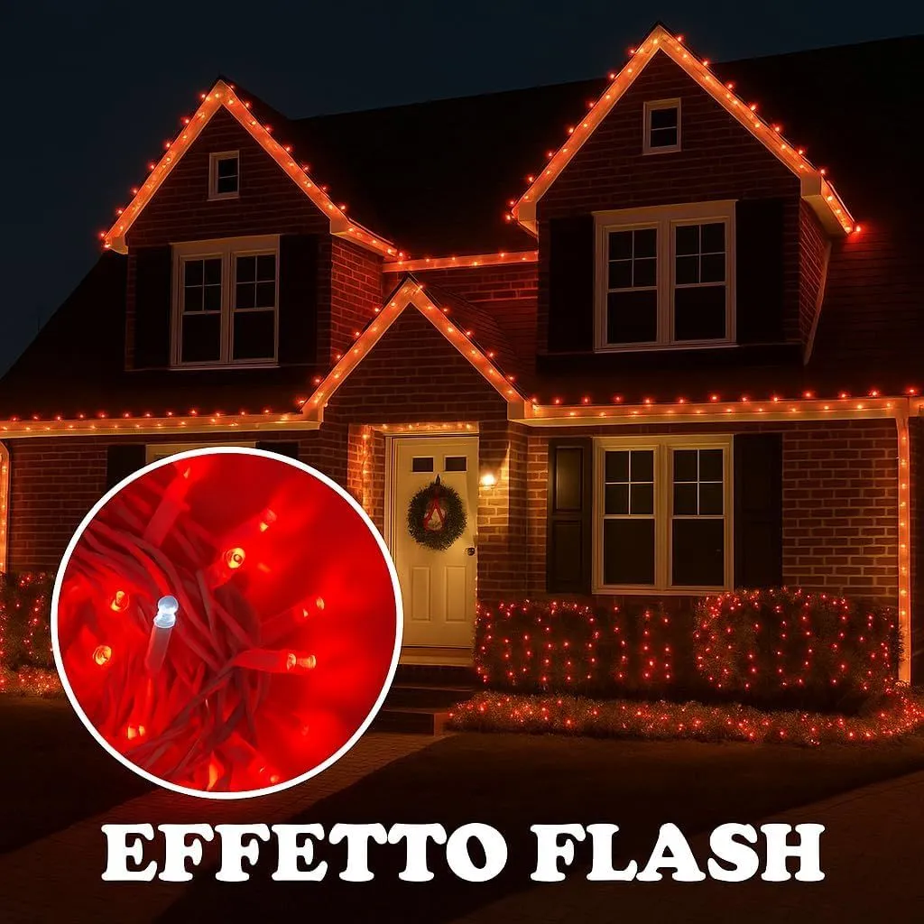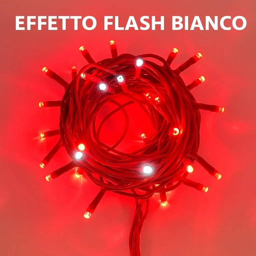 10M Catena Luce Rosso , Effetto Flash Bianco Luminosa 100 LED, , Cavo Nero, IP65, Prolungabile, ghirlanda nataliza, negozi, balcone