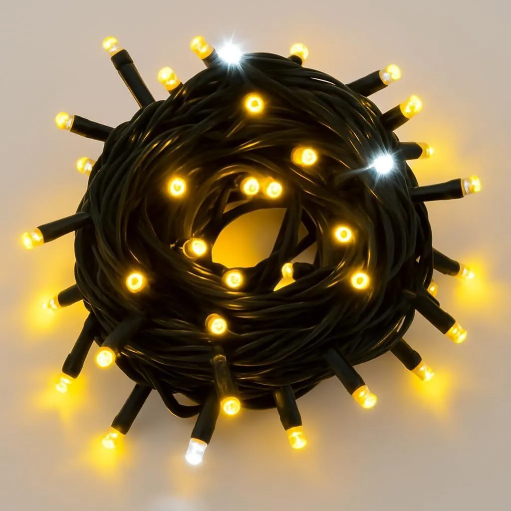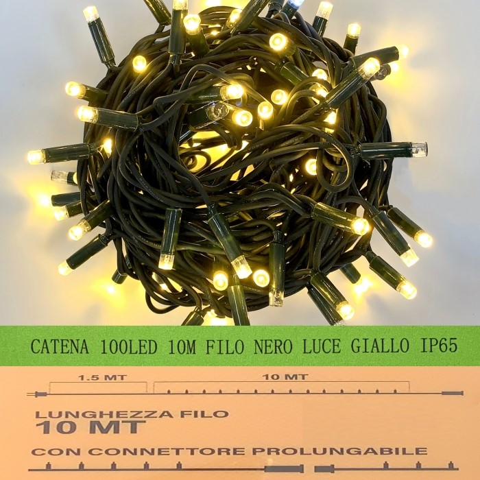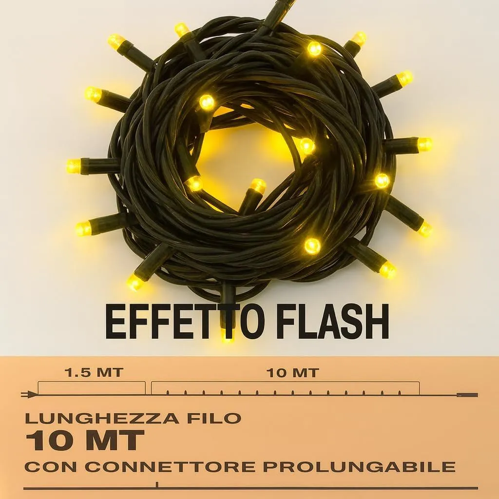 10M Luce Giallo Effetto Flash Bianco Catena Luminosa 100 LED, , Cavo Nero, IP65, Prolungabile, , ghirlanda nataliza, negozi, balcone
