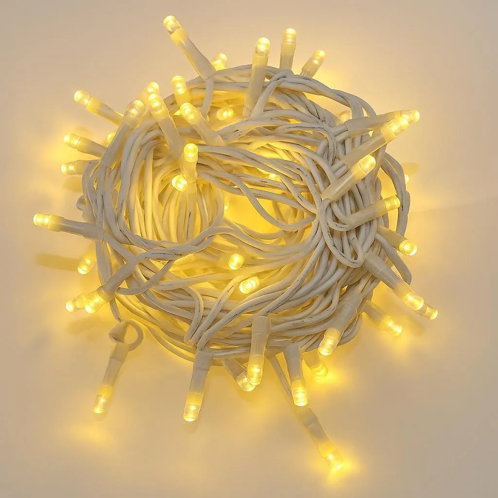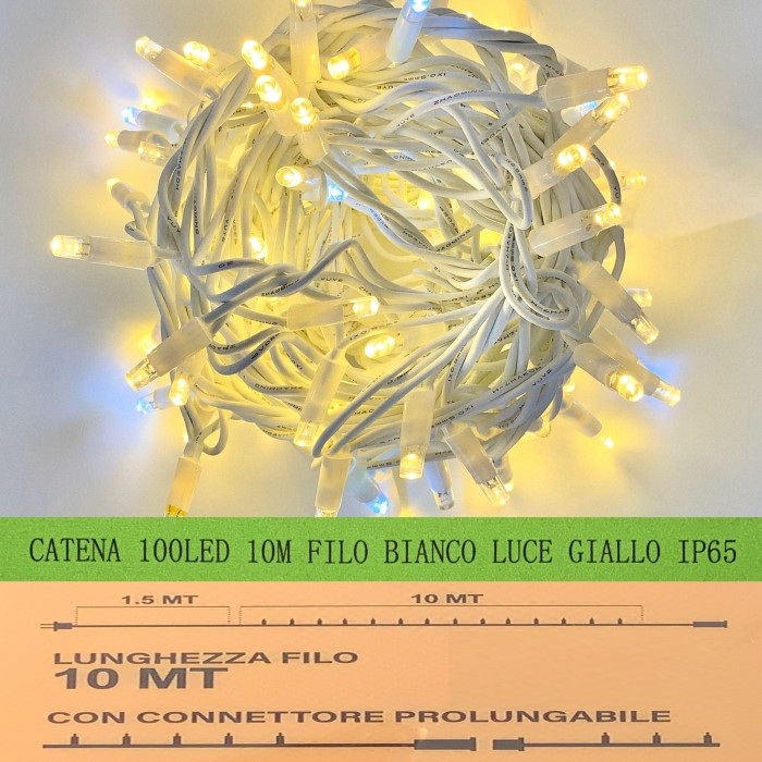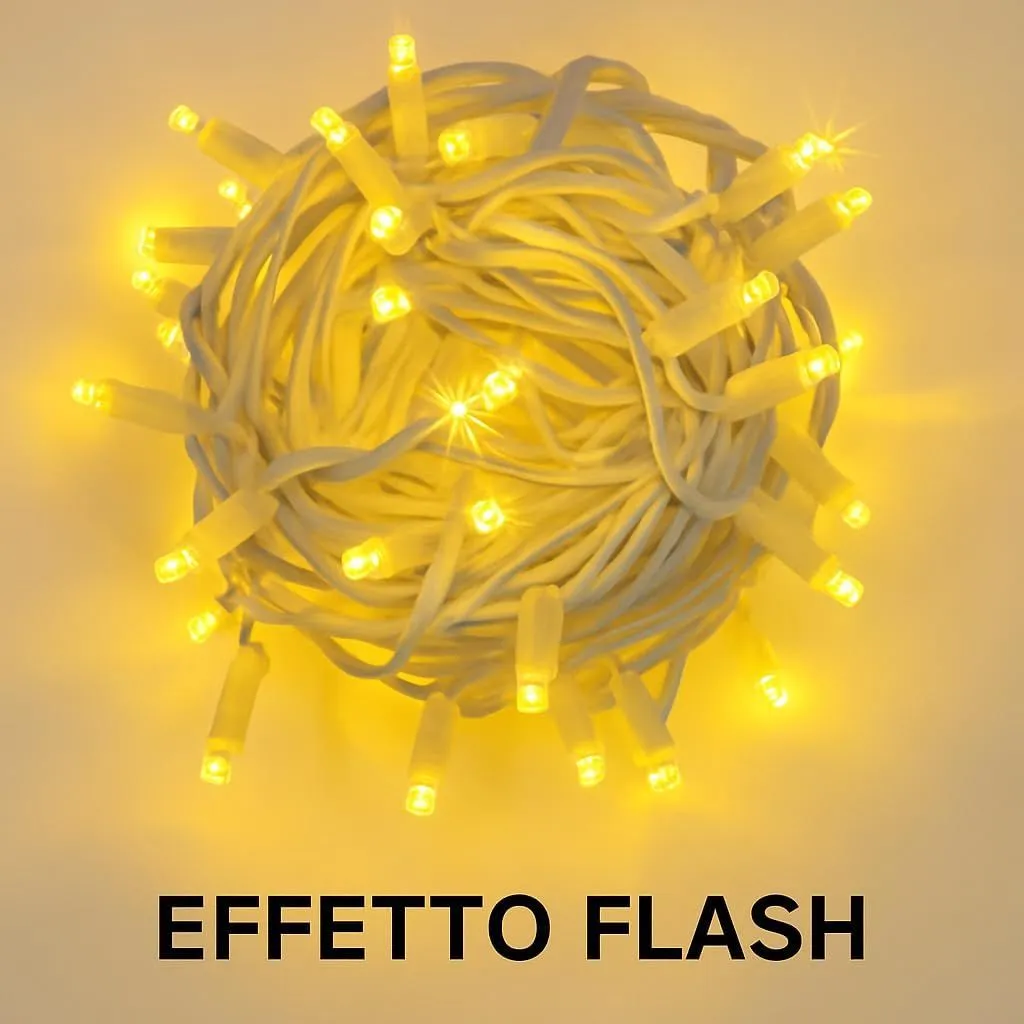 10M Luce Giallo Effetto Flash Catena Luminosa 100 LED, Cavo Bianco, IP65, Prolungabile, , ghirlanda nataliza, negozi, balcone