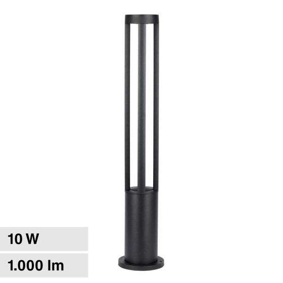Lampada LED da giardino con corpo illuminante da 10W LED COB CREE. Forma realizzata in alluminio di colore nero. di 110°, flusso luminoso di 1000 lm ed alta luminosità con rapporto di 100 lm/W. IP65 per utilizzo esterno Luce 3000K CALDA