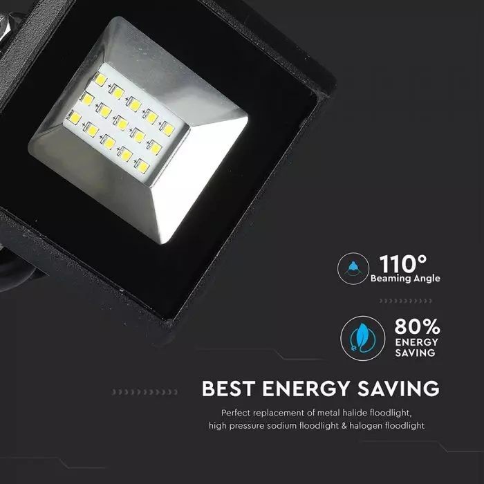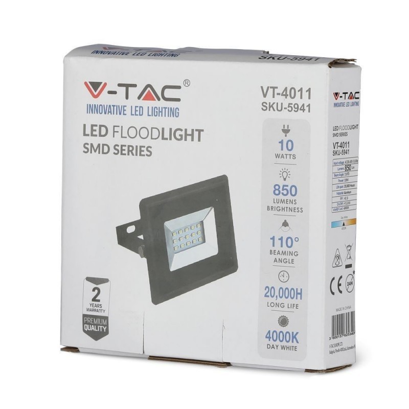 10W LUCE 6500K BIANCA SKU 5942 V-TAC Faro LED SMD E-Series Colore Nero IP65