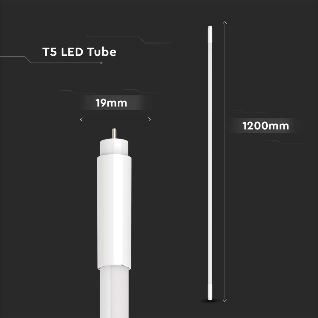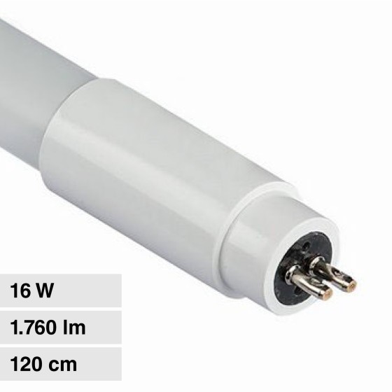 Tubo LED SMD da 16W realizzato in plastica con copertura opaca. Attacco G5 e forma tubolare T5. Fascio luminoso di 160° e flusso luminoso di 1760 lm. Alta luminosità con rapporto di 110 lm/W. Disponibile con: Luce Bianca Naturale 4000K e Fredda 6500K. Dimensioni: Ø19x1149mm