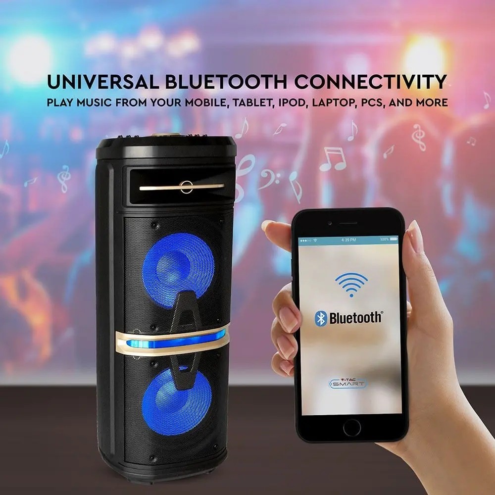 120W V-TAC Altoparlante Trolley Ricaricabile con Microfono Wireless + uno Cablato Telecomando RGB
