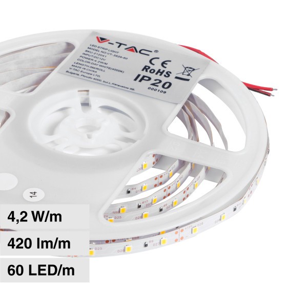 12V 4.2W/m 5m LUCE 6500K BIABCA 60 LED/m Strip LED SMD3528 IP20 8mm