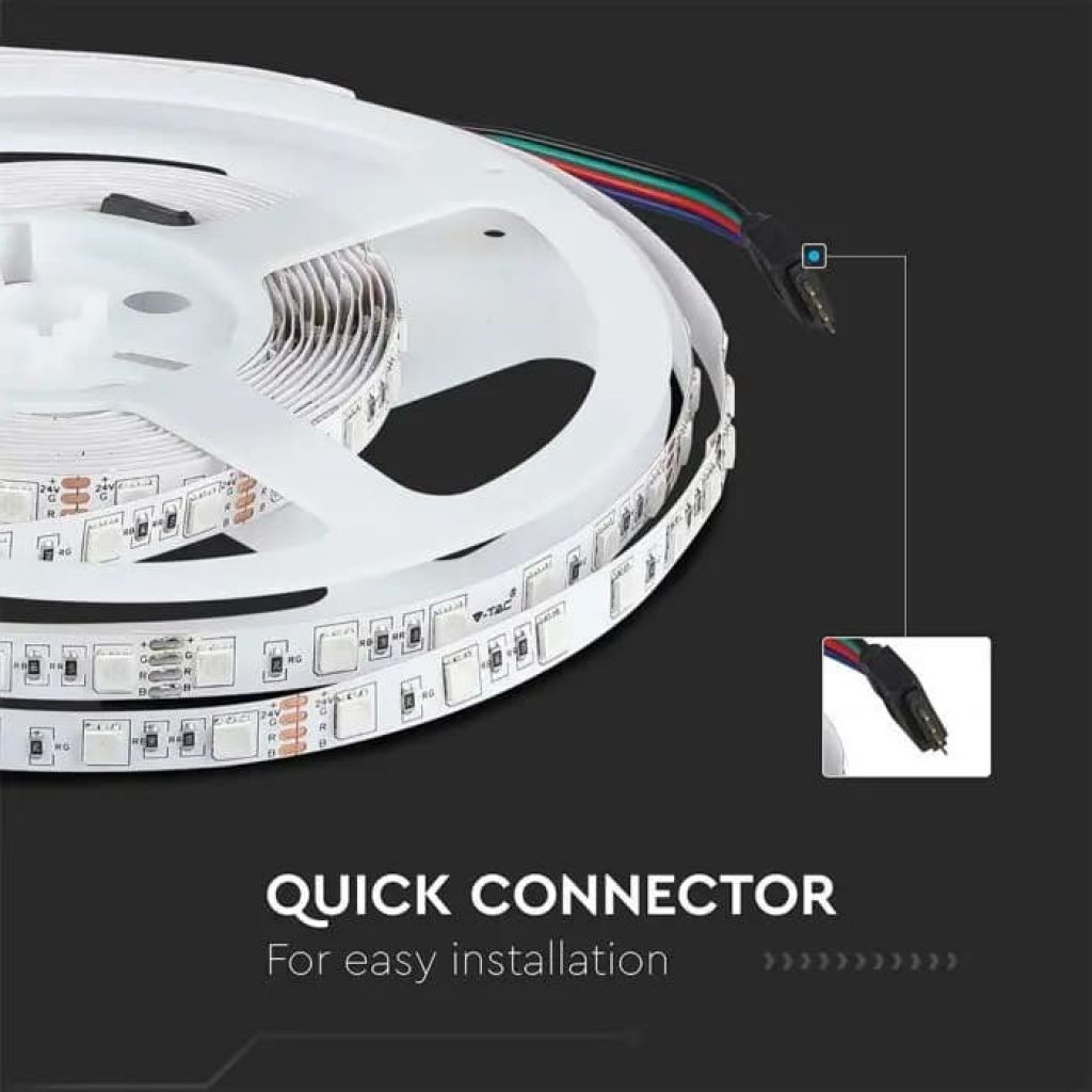 Striscia LED SMD5050 con potenza totale di 40W. Lunghezza bobina: 5m, sezionabile ogni 100mm. 60 LED per metro e potenza di 8W/m. ldi 400lm/m (2000lm totali) e rapporto di 50lm/W. Disponibile con: Luce RGB . Dimensioni (LxH): 10x2mm.