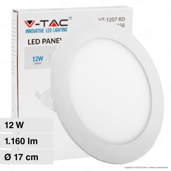 12W LUCE 2700K CALDA SKU 214857 VT-1207 V-TAC Mini Pannello LED Montaggio ad Incasso Rotondo