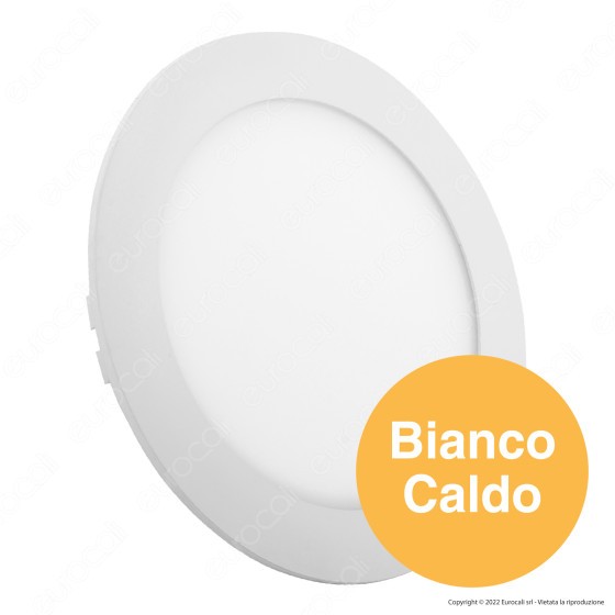 Mini pannello LED rotondo con potenza di 12W e tecnologia LED SMD. Fascio luminoso di 120°, flusso luminoso di 1160lm e rapporto di 96 lm/W. in alluminio Luce Bianca Calda 2700K Driver incluso. Dimensioni: Ø170x12mm.