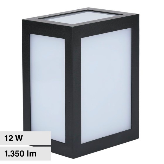 Applique con corpo illuminante LED da 12W integrato e tecnologia LED SMD.realizzata in metallo . Fascio luminoso di 170° e flusso luminoso di 1350lm. Alta luminosità e rapporto di 112 lm/W. Grado di protezione IP65 per utilizzo esterno. Luce Bianca 6400K