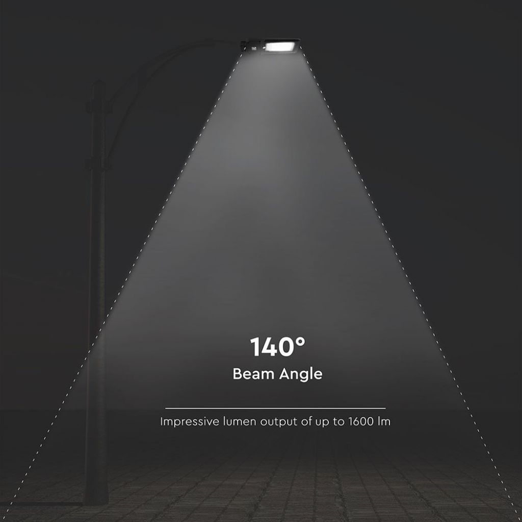 Armatura stradale LED con potenza di 15W, dotato di pannello solare e sensore di movimento PIR. Corpo in materiale plastico di colore nero dal design moderno ultra slim. Gradazione colore luce bianco naturale 4000K, con fascio luminoso di 140° e flusso luminoso ad alta luminosità di 1.600LM.