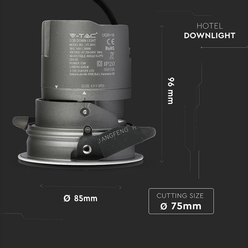 15W LUCE 4000K V-TAC Faro da Incasso LED COB per Hotel Orientabile di 27° CRI95