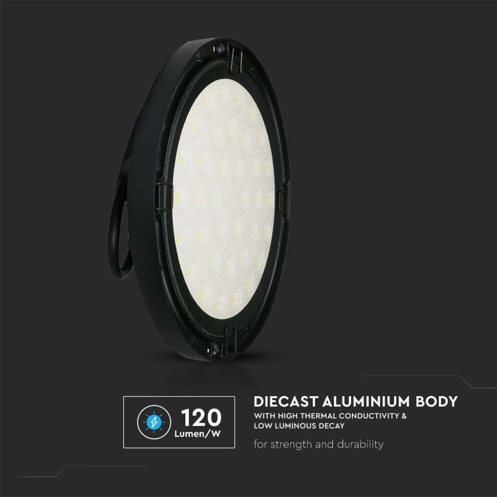 200W 120LM/W LUCE 4000K NATURALE Campana Industriale LED SMD UFO Colore Nero 110° IP65