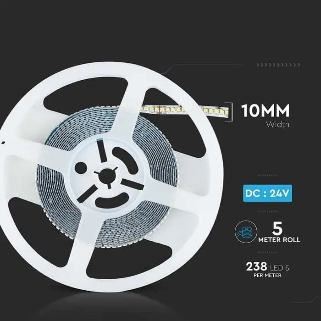 24V 18W/m 5m LUCE 6500K BIANCA LED SMD2835 1 238 LED/m 135LM/W IP20 10mm