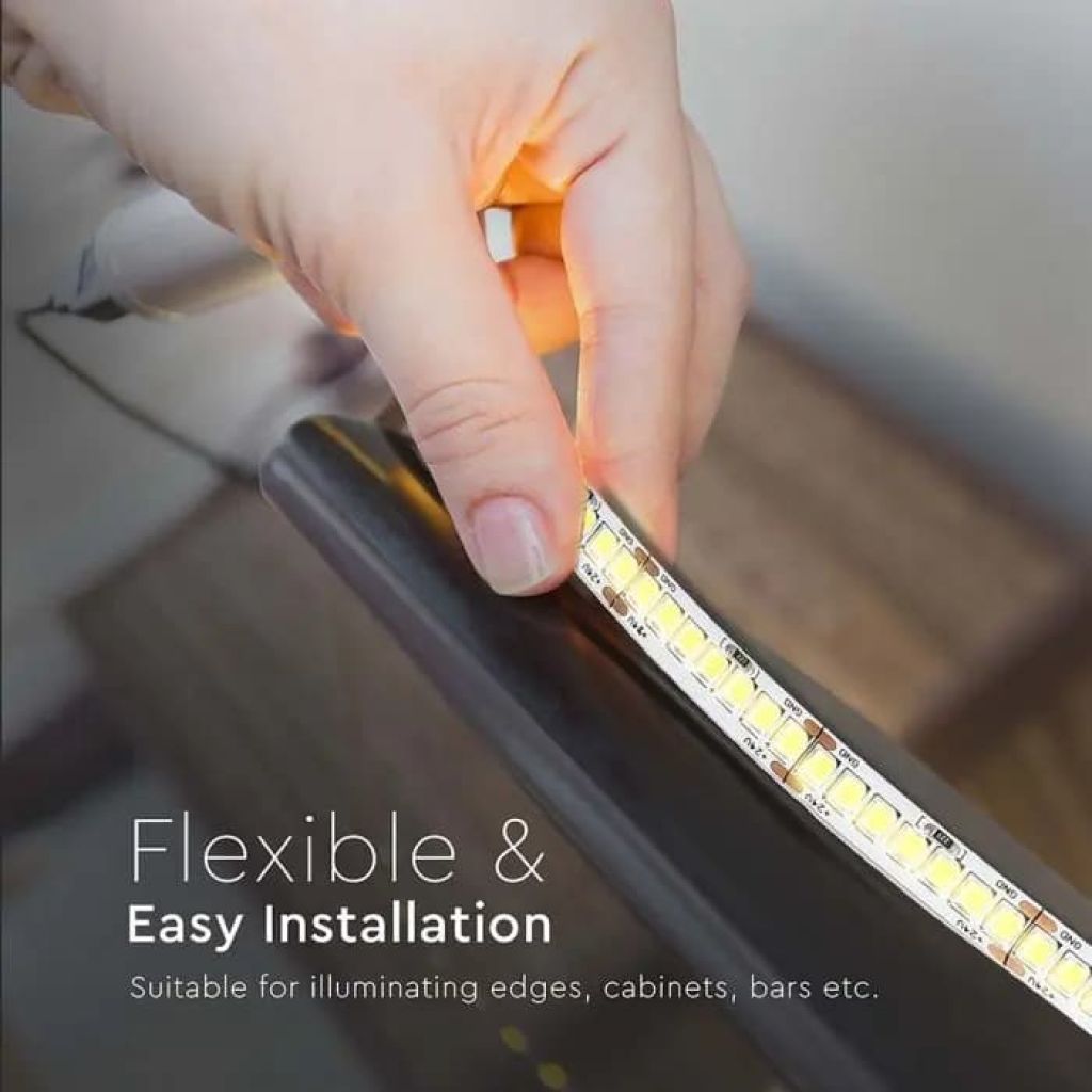 Questa striscia LED offre un’elevata efficienza luminosa di 135lm/W, garantendo un’illuminazione brillante a consumi ridotti. Con un indice di resa cromatica CRI >80, assicura colori naturali e realistici. È dimmerabile, permettendo di regolare l’intensità luminosa a seconda delle necessità. Il retro adesivo facilita l’installazione su superfici lisce come vetro, metallo e legno. Per una migliore dissipazione del calore e una maggiore durata, si consiglia l’uso di profili in alluminio.