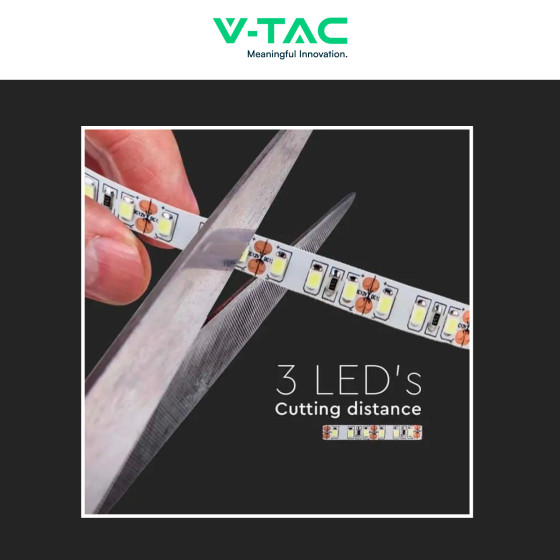 Questa striscia LED utilizza un’alimentazione a 24V DC, ideale per installazioni di grandi dimensioni grazie alla minore perdita di tensione. Con una distanza di taglio di 40mm (ogni 7 LED), permette un’installazione precisa e flessibile.