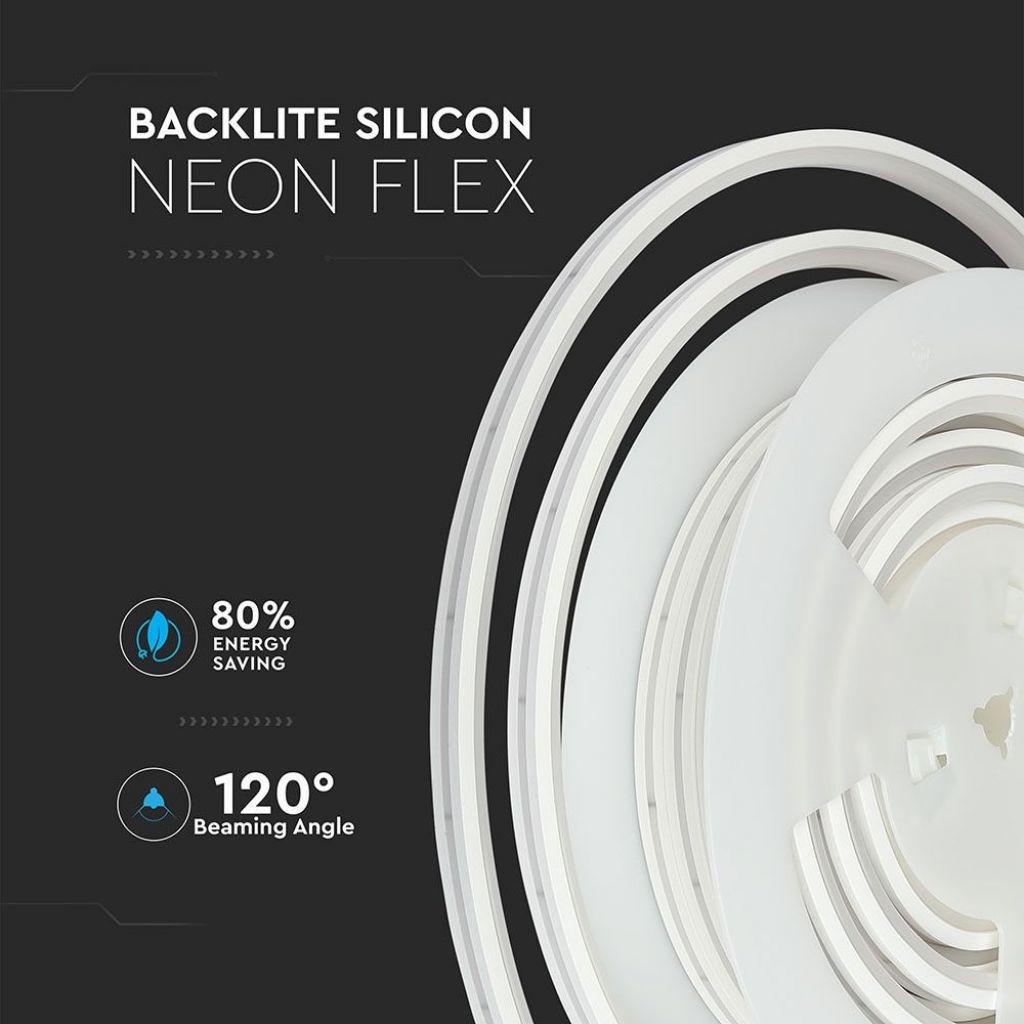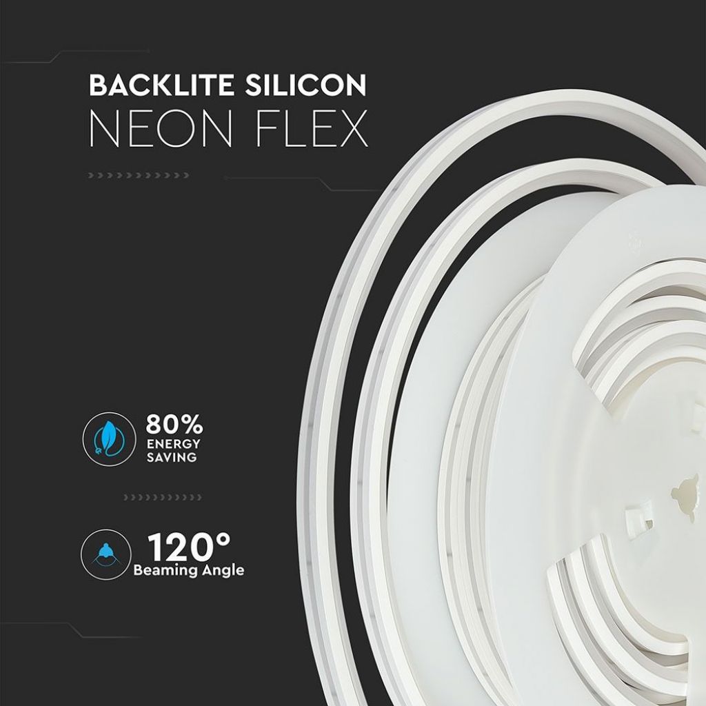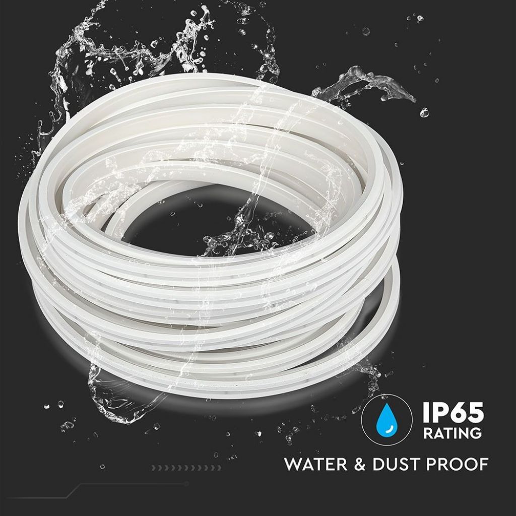 La Striscia Neon Flex V-TAC utilizza chip LED SMD di alta qualità per un’efficienza energetica ottimale e una lunga durata di vita, fino a 20.000 ore.