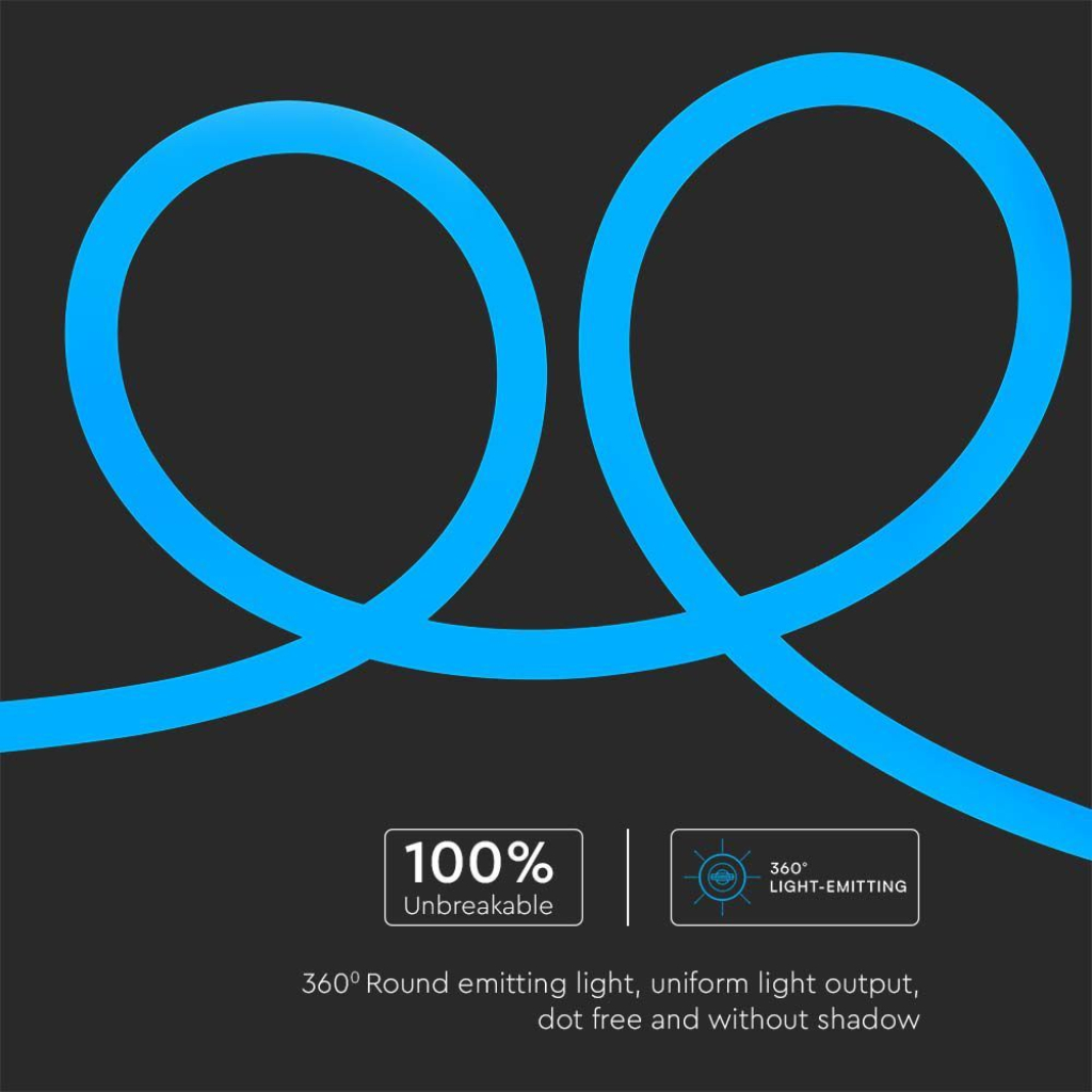 Neon Flex LED SMD 2835 monocolore flessibile da 12W/m (120W totali). 240 LED/m e fascio luminoso di 360°. Bobina da 10 metri. Disponibile con: Luce Verde, Blu, Arancione e Rosa. Dimensioni: Ø25mm.