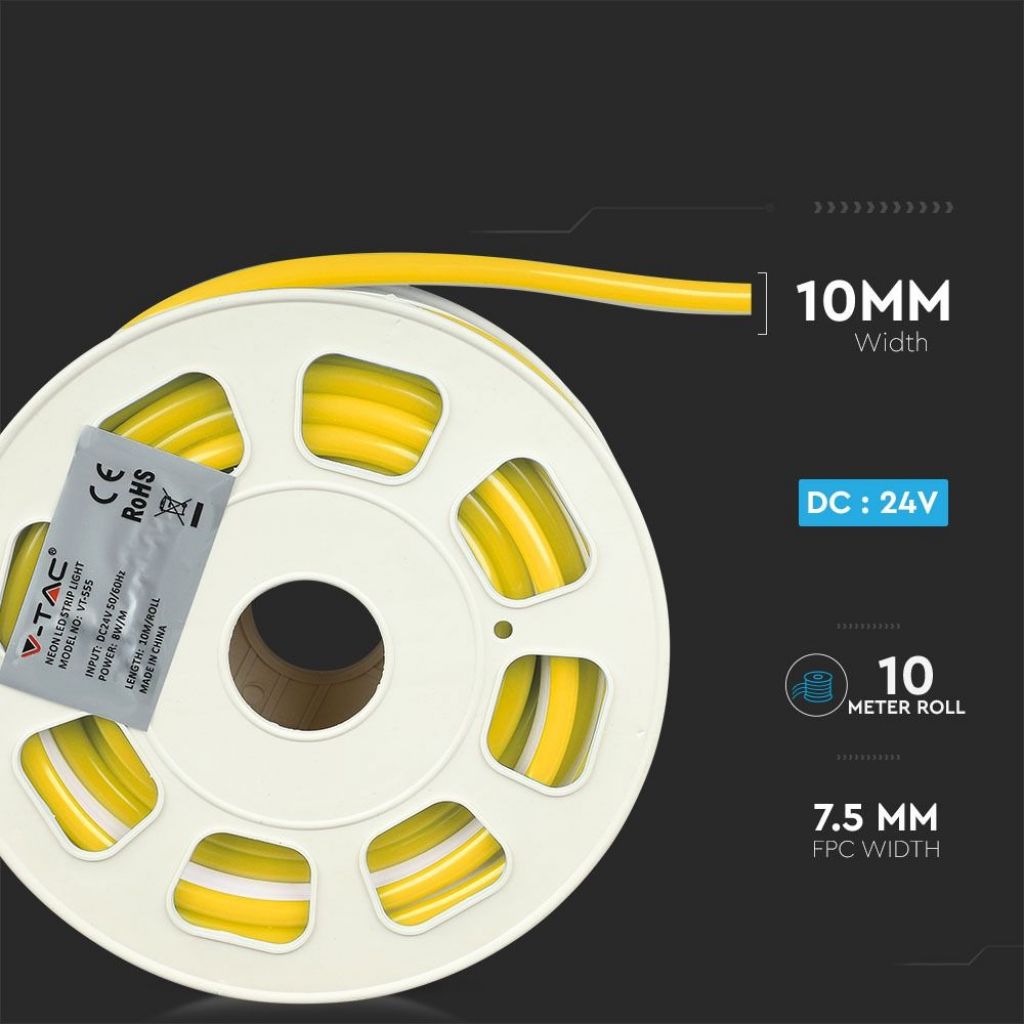 24v luce gialla Neon Flex 8W/m 120 LED/m Bobina 10m IP65