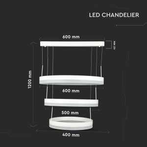 Lampada a sospensione di colore bianco con LED SMD, Fascio luminoso di 120° e flusso luminoso di 2250 lm. Dimmerabile. Driver incluso. Disponibile con Luce Bianca Calda 3000K. Dimensione:Ø600×1200mm.