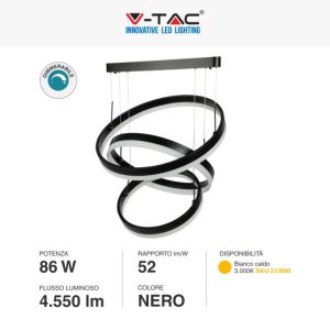 25W LUCE 3000K SKU 3995 VT-25-1-W V-TAC Lampadario LED a Sospensione Circolare in Metallo Colore Bianco