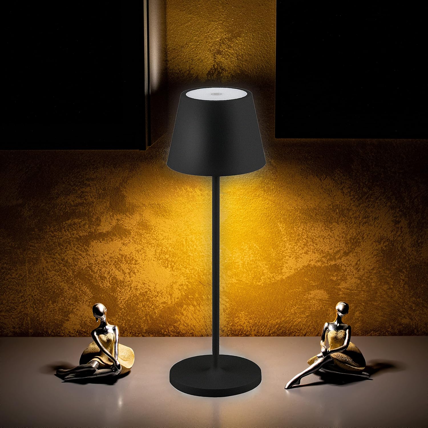 2W LUCE 3000K CALDA Wireless e Touch Dimmerabile IP54 Lampada LED da Tavolo Colore Nero con caricatore
