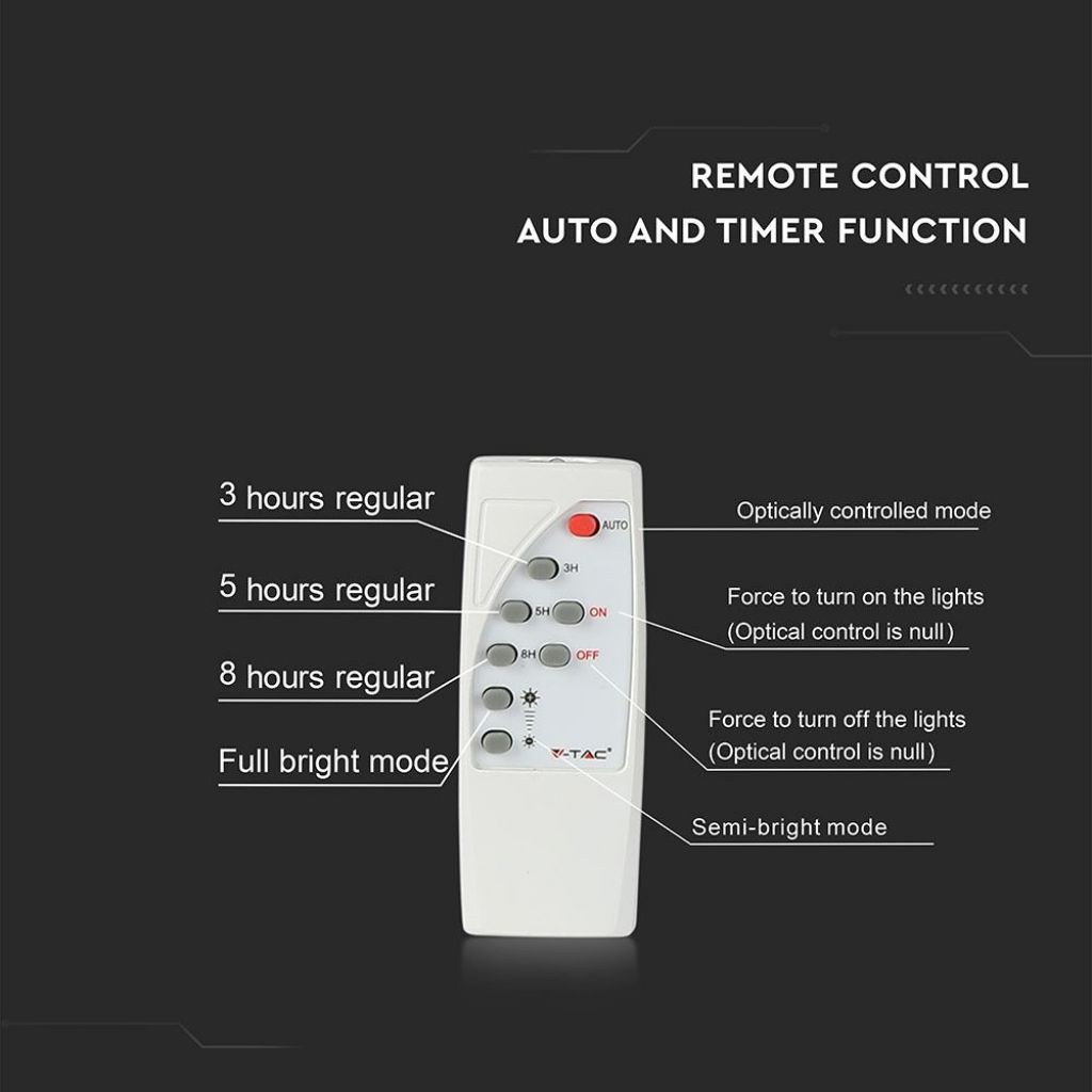 VT-300W si distingue per la sua versatilità d’installazione, grazie al pannello solare collegato con un cavo di 5 metri, consentendo una posizione flessibile del pannello rispetto alla luce. La struttura in alluminio del faro, di colore nero, dotata di LED SMD con una temperatura di colore di 4000K, offrendo una luminosità di 4200 lumen con un angolo di diffusione della luce di 120 gradi. Questo garantisce un’illuminazione uniforme e piacevole, simile alla luce del giorno, perfetta per creare un’atmosfera accogliente e sicura nei tuoi spazi esterni.