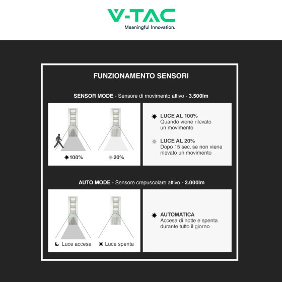 300W luce 4000k naturale V-TAC Armatura Stradale con Pannello Solare Colore Bianco IP65