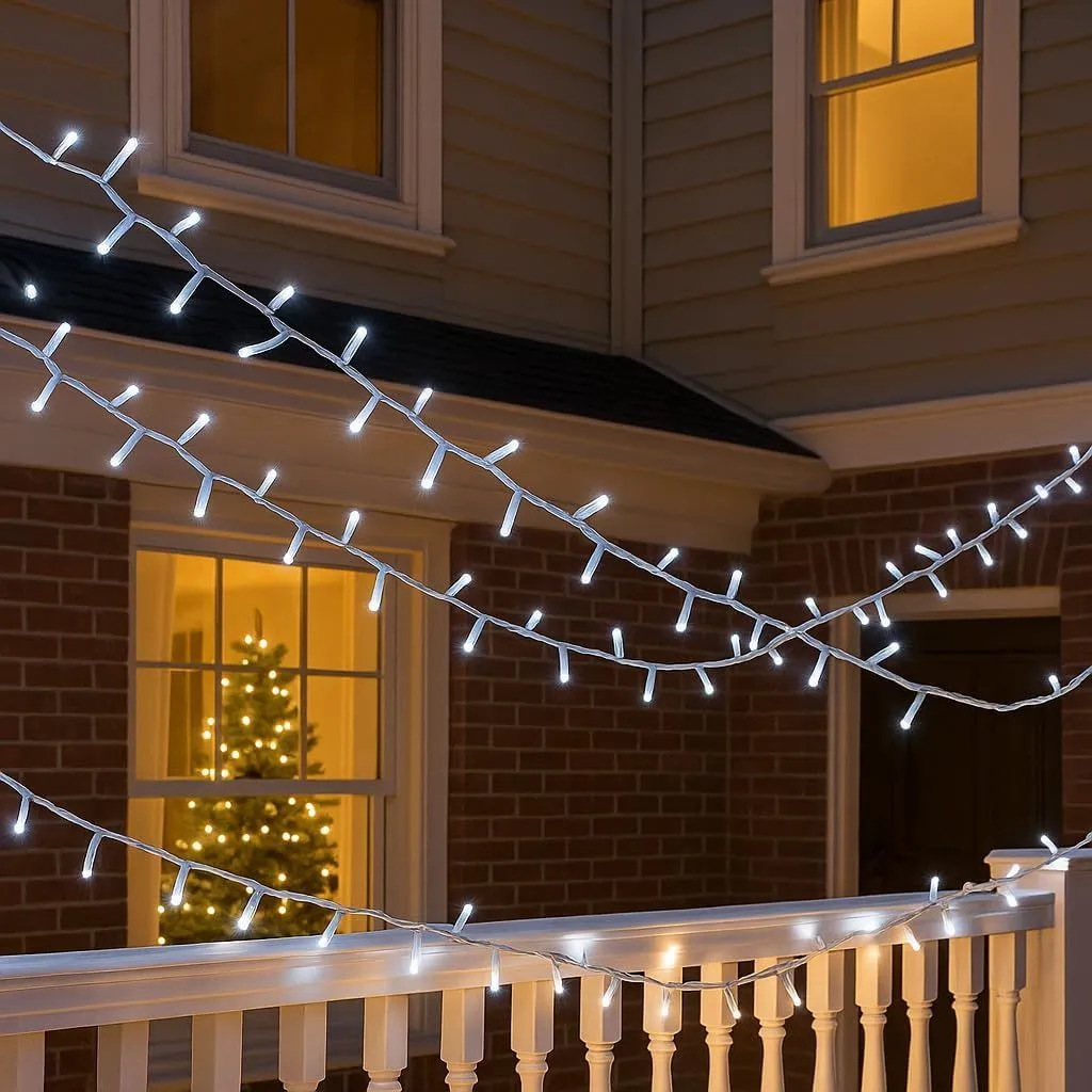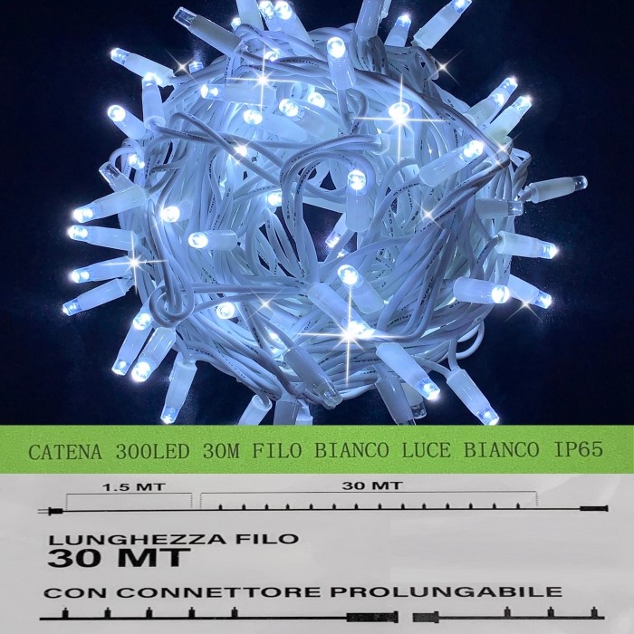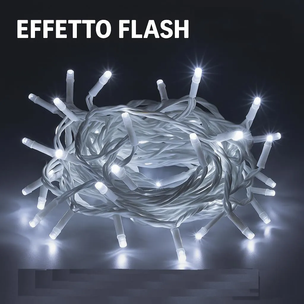 30M Luce Bianca Effetto Flash Catena Luminosa 300 LED, Cavo Bianco, IP65, Prolungabile, , ghirlanda nataliza, negozi, balcone natale