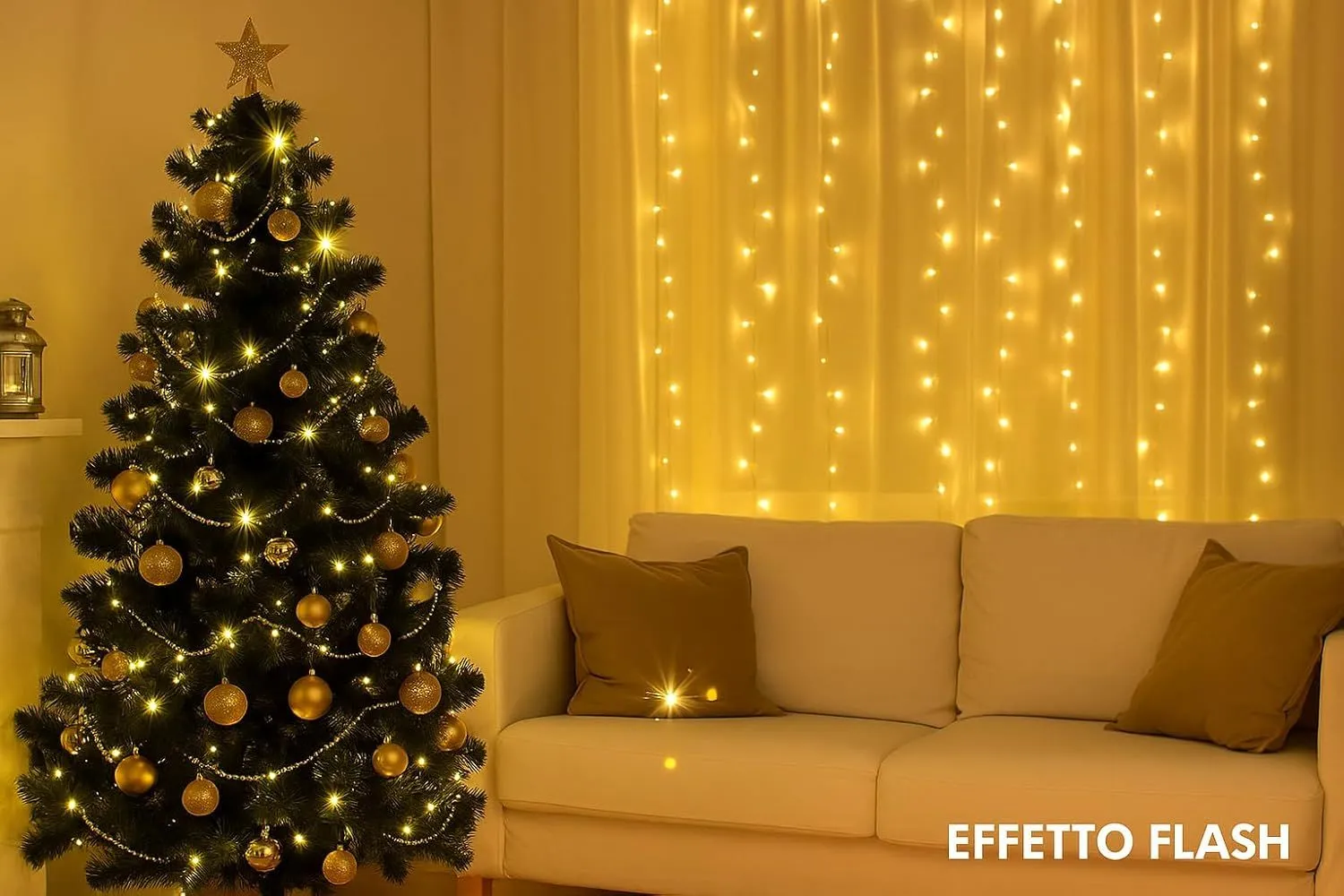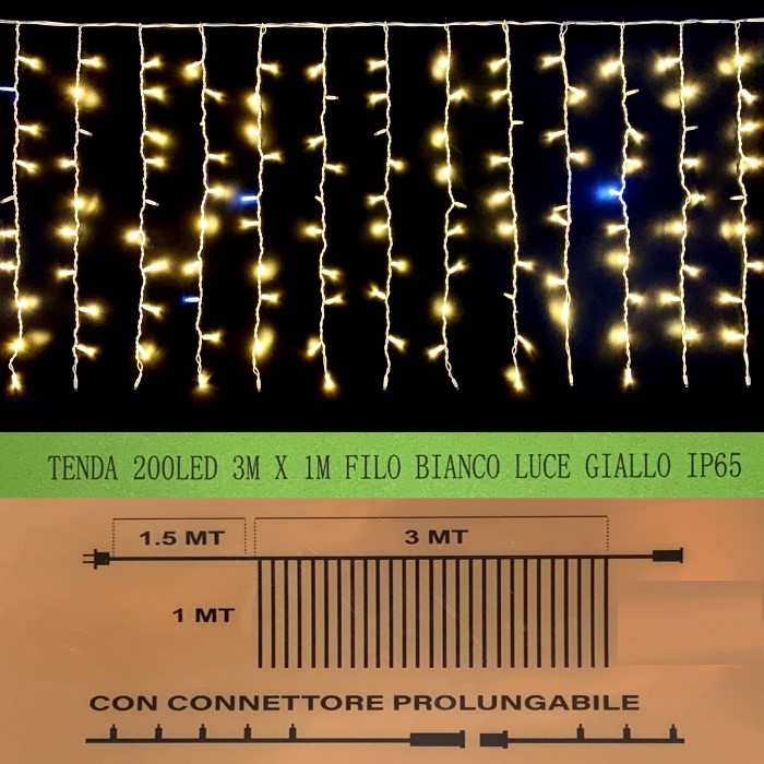 3MX1M Luce gialla effetto flash 200 luci a LED, 3 m, cavo bianco, IP65, estensibili, con fili uniformi da 1 metro, ghirlanda natalizia, negozi, balcone natalizio