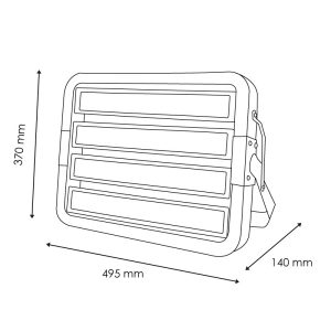 Proiettore LED SMD con Chip Samsung. Colore Nero. Fascio luminoso di 100° di 48000 lm. Potenza 400W e rapporto di 120 lm/W. IP65. Disponibile con: Luce Bianca NATURALE   4000K. Dimensioni:580x505x155mm.