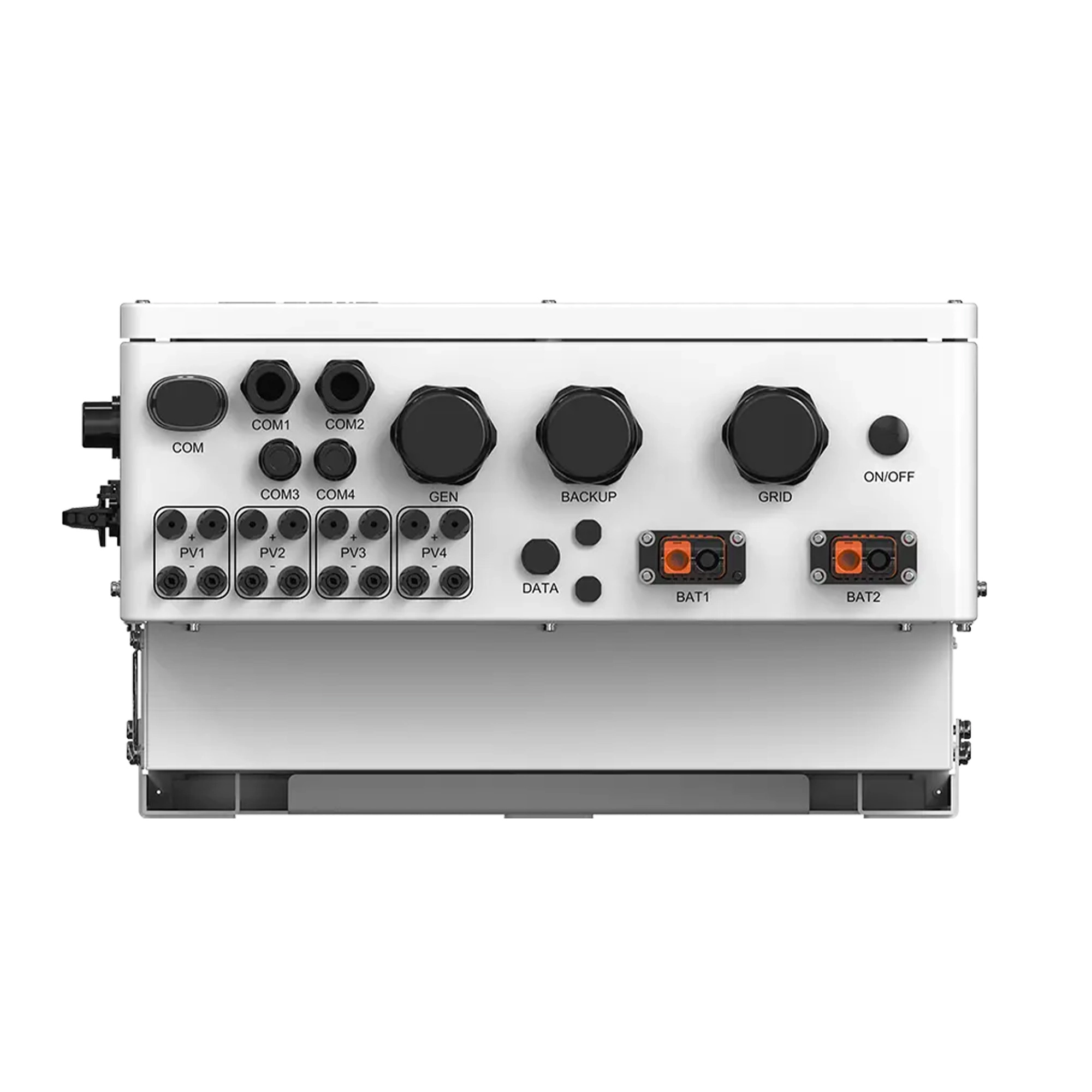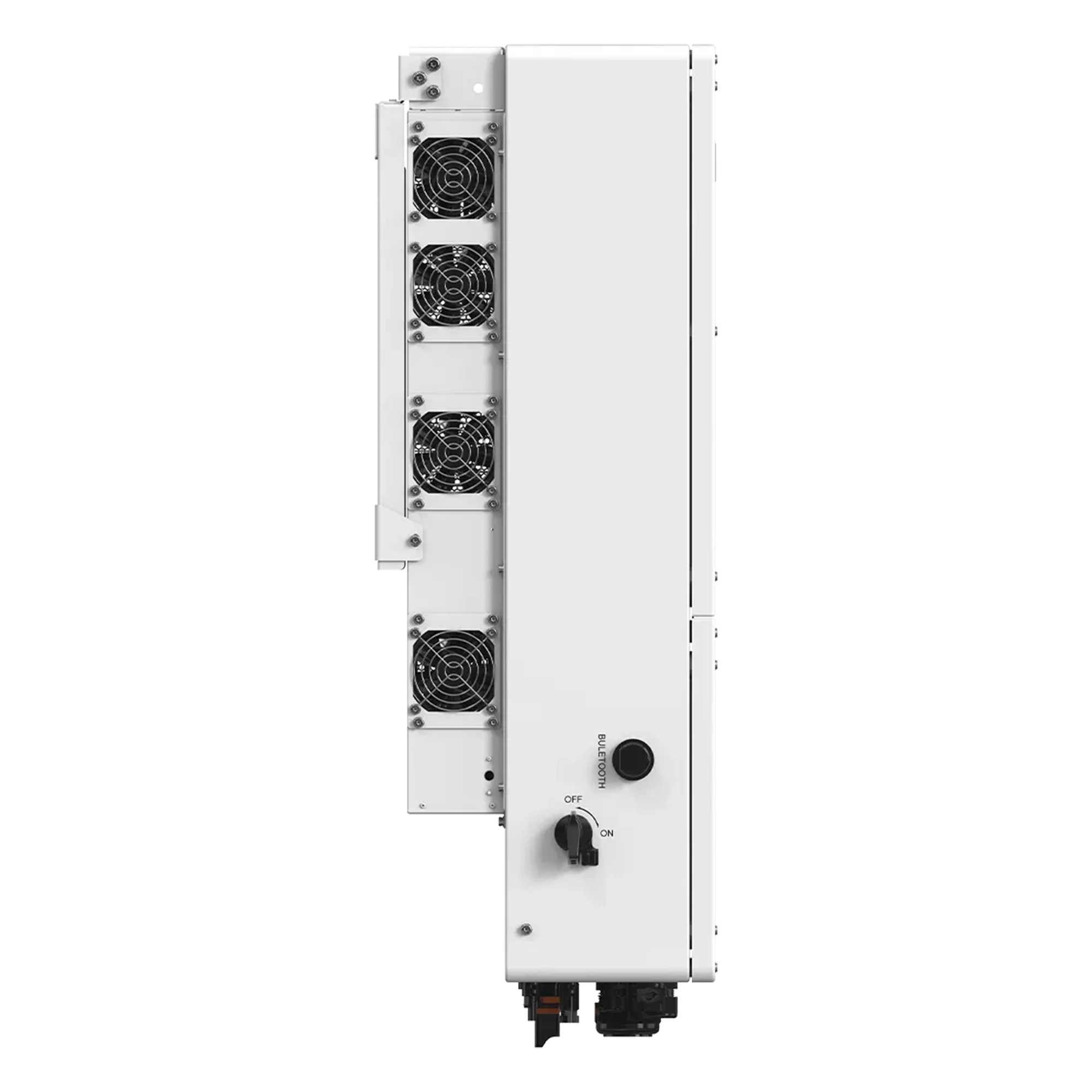 Inverter ibrido On-Grid/Off-Grid per pannelli solari di impianti fotovoltaici industriali. Sistema trifase, potenza di 50kW e tensione in ingresso di 1000V. Potenza max in ingresso (totale pannelli collegabili): 96kWp. Predisposto per l’installazione a parete, grado di protezione IP66 per uso esterno. Compatibile con batterie ad alta tensione. Inclusi accessori per l’installazione e modulo Wi-Fi. Garanzia: 10 anni. Dimensioni: 530x880x290mm. Peso: 73Kg.