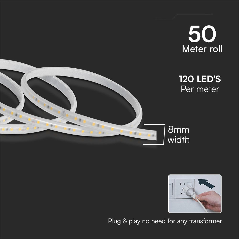 50MT 220V LUCE 4000K NATURALE 10.5W/m IP65 8mm Kit Strip LED SMD 2835 120 LED