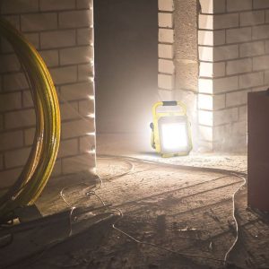 Faro LED Flood Light da 50W con fascio luminoso di 100° e flusso luminoso di 7870lm. Alta luminosità e rapporto di 157 lm/W. Corpo in alluminio di colore nero e copertura satinata. Grado di protezione IP65 per uso esterno. Luce Bianca Naturale 4000K