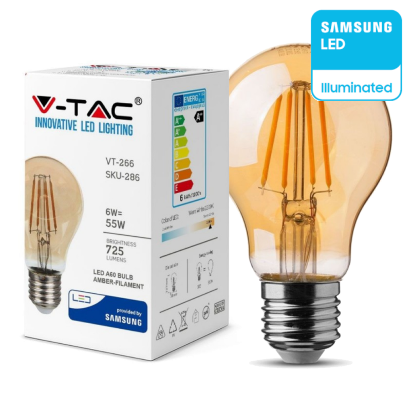 6W LUCE 2200K CALDA SKU 286 VT-266 V-TAC PRO Lampadina LED Chip Samsung E27 A60 Filamento Ambrato