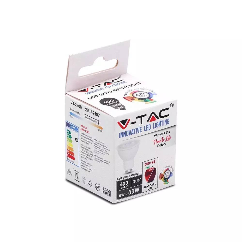 6w LUCE 6400k BIANCA SKU7499 VT-2206 V-TAC Faretto LED GU10 6W 38° CRI 95