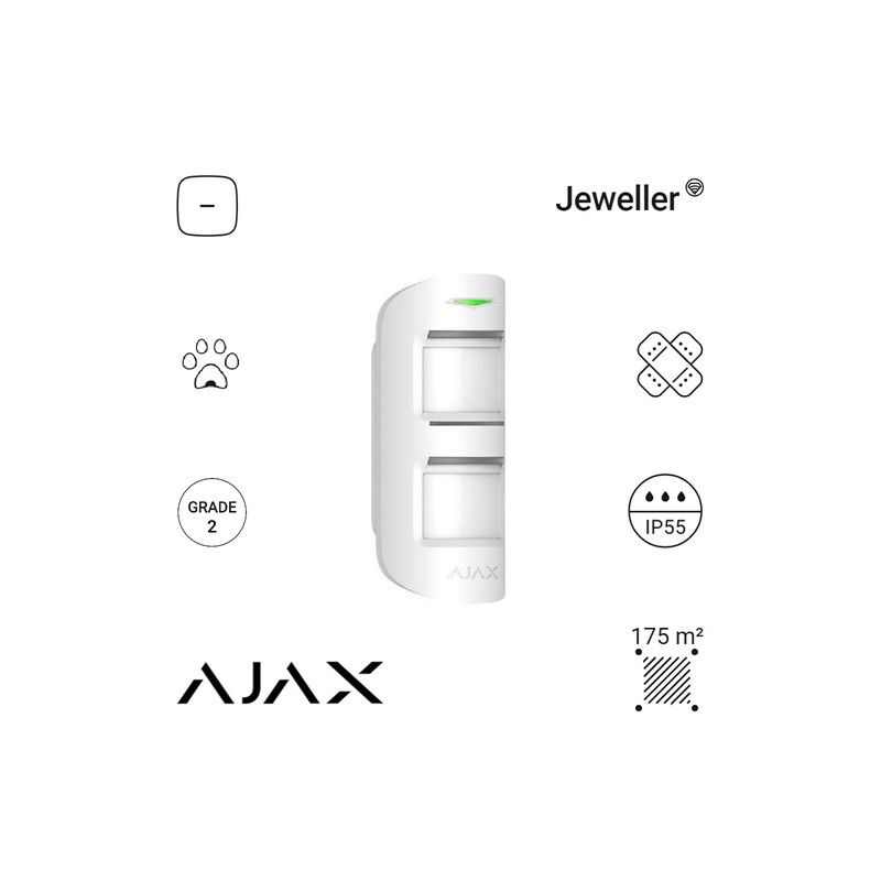 Il rilevatore di movimento Ajax MotionProtect Outdoor segnala il movimento in un’area protetta rilevando la radiazione infrarossa di un oggetto. Tutti gli esseri viventi emettono radiazioni infrarosse, compresi gli esseri umani. Il rilevatore riceve le informazioni utilizzando due sensori a infrarossi indipendenti, che trasmettono i dati all’unità centrale tramite il protocollo radio sicuro Jeweller. I segnali letti dai sensori sono controllati dall’algoritmo LISA a due fattori. L’algoritmo analizza i dati ricevuti da due sensori e li confronta. Se i segnali sono simili, l’utente riceve una notifica sull’incidente. Questo principio di funzionamento aiuta ad evitare falsi allarmi del rilevatore di movimento wireless.La portata del rilevatore di presenza da esterno è regolata dall’utente in un intervallo da 3 a 15 metri.