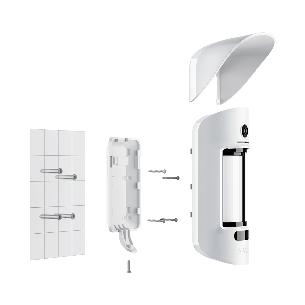 MotionCam Outdoor è resistente al calore fino a +60°С e al freddo fino a −25°С. E per proteggere i sensori del sistema antimascheramento dalla pioggia e dalla neve, forniamo uno speciale tettuccio Hood.