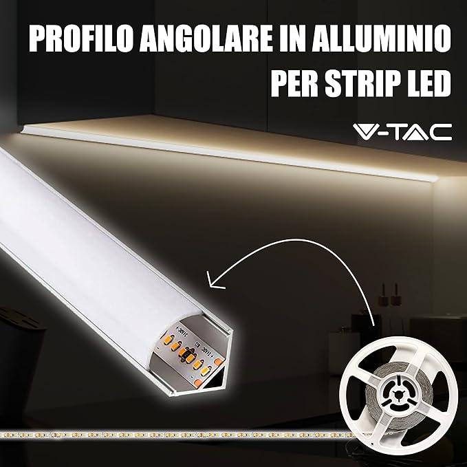 Il profilo angolare V-TAC è ideale per applicazioni in interni residenziali, showroom, negozi e ambienti commerciali. Perfetto per progetti di illuminazione architettonica, viene utilizzato per creare giochi di luce e migliorare l’estetica degli ambienti.