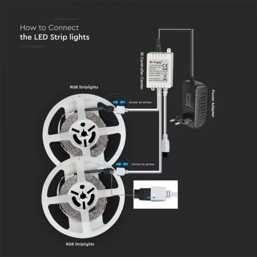 Kit Strip LED SMD5050 4,8W/m 30 LED/m RGB 2x5metri con Telecomando e Alimentatore