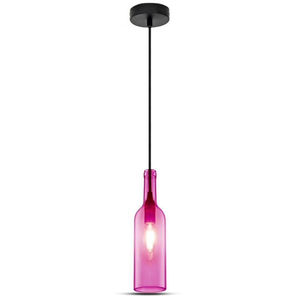 Lampadario E14 a Bottiglia in Vetro con Portalampada (Max 60W) Colore Rose