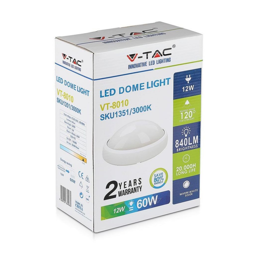 NON DISPONIBILE SKU 1353 VT-8010-W V-TAC Plafoniera LED Ovale 12W Colore Bianco 6000K IP54