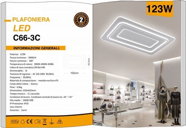 PLAFONIERA A LED 3IN1 SMART RETANGOLARE 132W LUCE 2700-6500