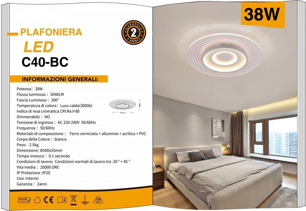 PLAFONIERA A LED DA SOFFITTO TONDA 38W LUCE 3000K