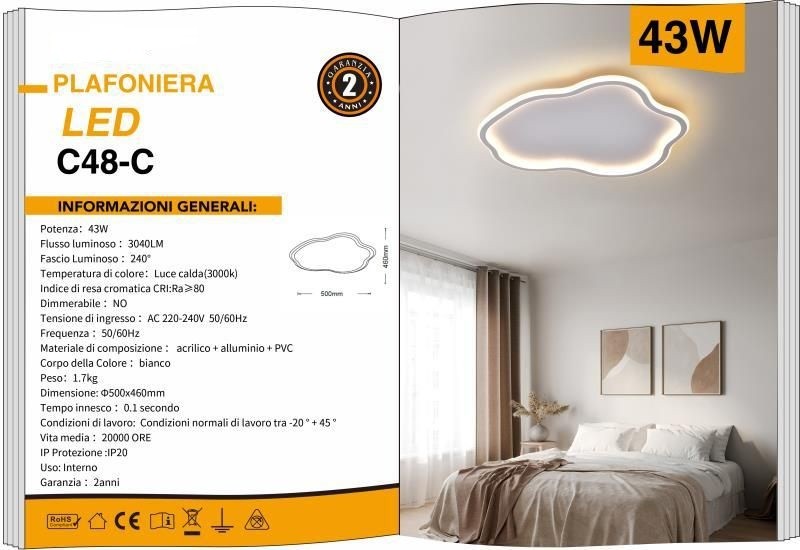 - Potenza: 43W Flusso luminoso: 3040 lm Fascio luminoso: 240° la variante per la tonalità della luce va scelta al momento del pagamento e non successivamente